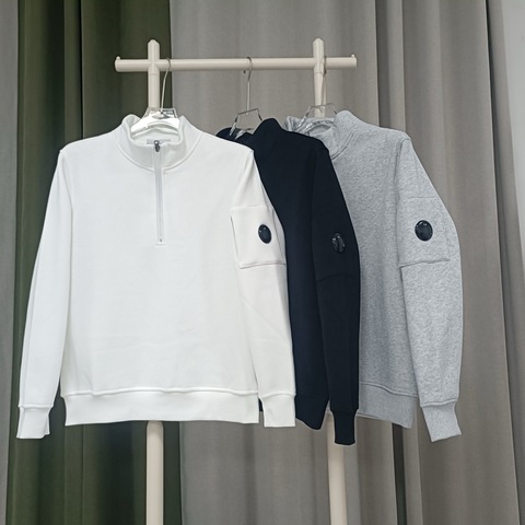 Sudadera con capucha de lana con semi cremallera en stock de fábrica de alta calidad, insignia de lente de bolsillo de Color sólido, ropa versátil informal Unisex