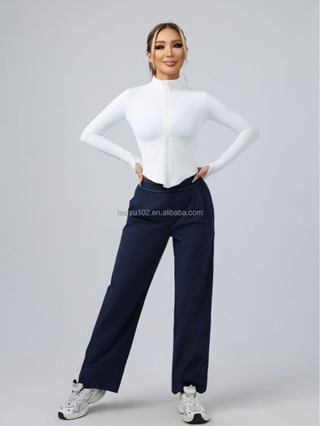 Glad Hoogwaardig Yoga Jack Met Korte Mouwen En Taille Nauwsluitende Top Met Rits Opstaande Kraag Sporttop