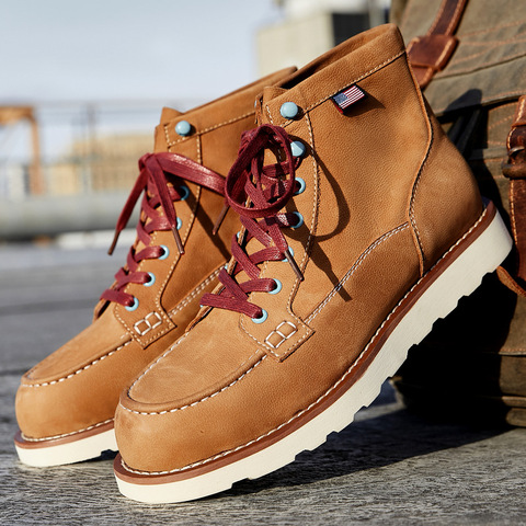 Goodyear Welt yarım çizmeler erkekler için popüler Retro Vintage moda ayakkabı dantel rahat eğlence kahverengi ayakkabı ile